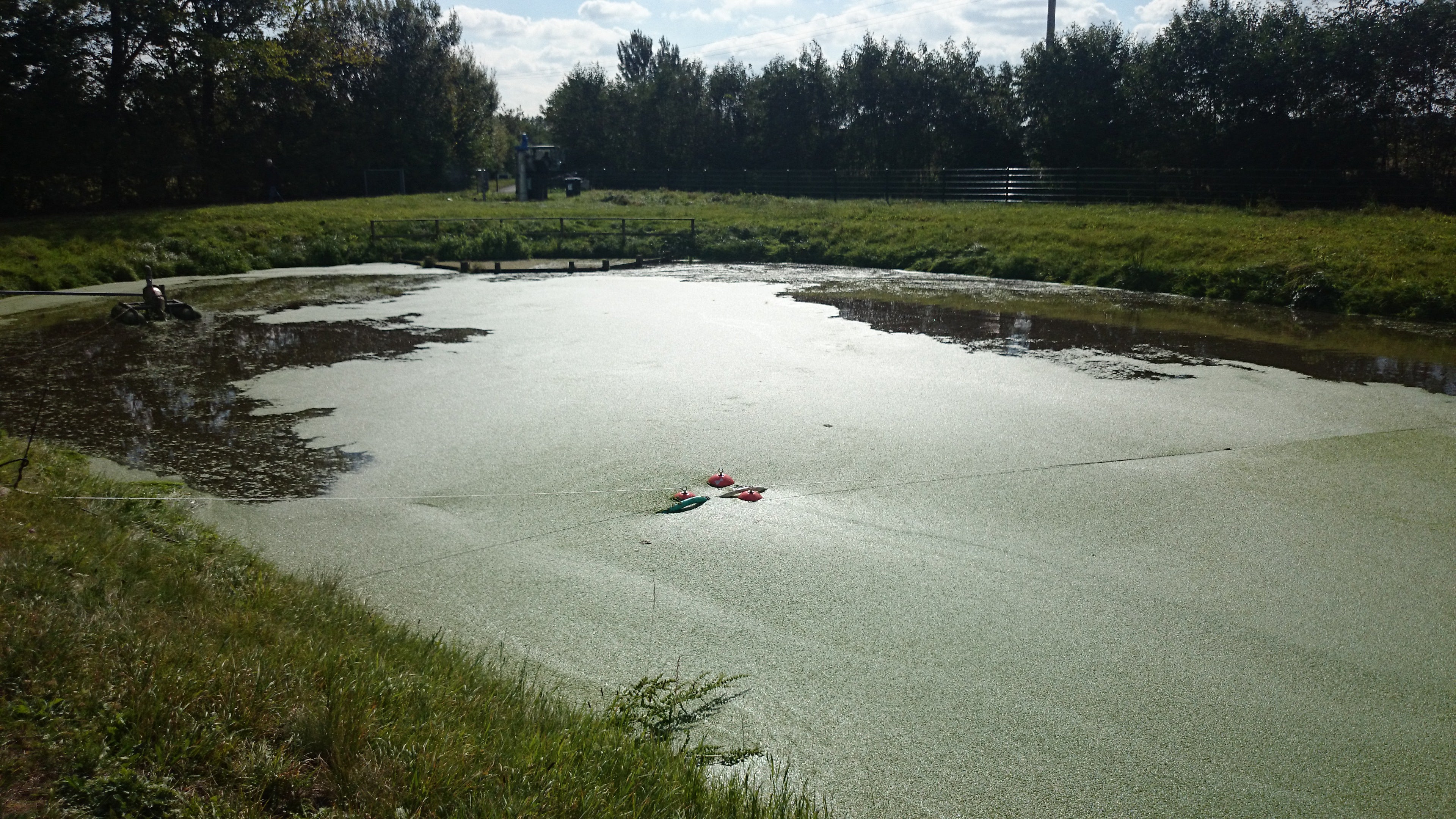 Removal of duckweed from the local drafting water reservoir.